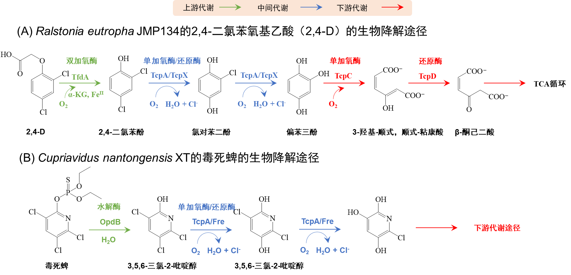 图4微生物对2,4-D和毒死蜱的降解途径举例介绍
